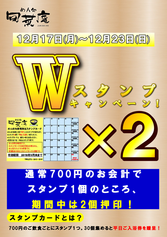 12月17日(月)~23日(日)は「Wスタンプキャンペーン」!