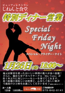 1月26日(金)はランチタイム・ディナータイム共に営業いたします!