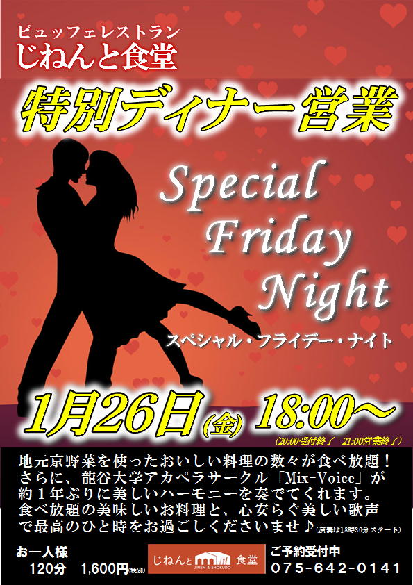 しかも、18時からのディナータイムは「スペシャル・フライデー・ナイト」♪