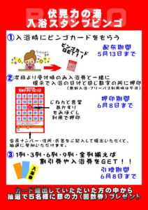 さらに、ビンゴカードをご提出いただいたお客様の中から抽選で5名様に入浴回数券「銀の力」をプレゼント!