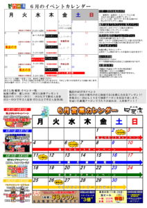 2018.6.14 2018年6月イベントカレンダー カテゴリ/イベントカレンダー アップロード遅くなりました。申し訳ございません。 6月もたくさんのイベントを開催いたします。 ≪ ポイント還元祭 6月28日(木)~6月30日(土) 《終了いたしました。》この度の震災に被災された方々へ ≫